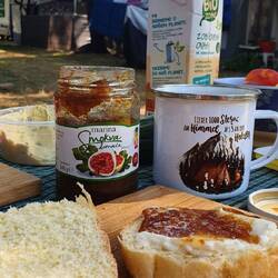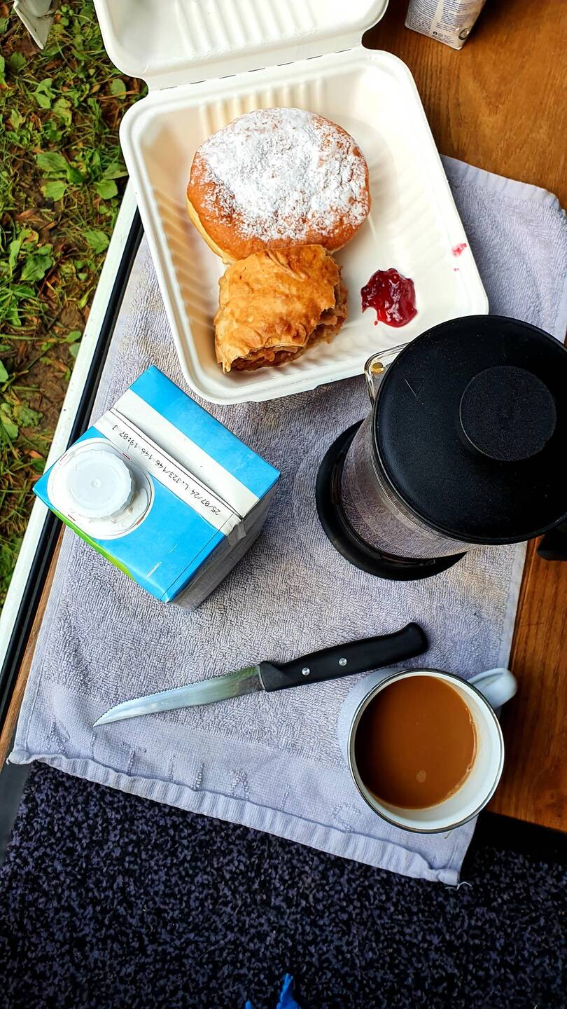 Zum Frühstück gibt es den Nachtisch vom Abendessen. Ein so schöner Platz hier. Wir genießen hier noch jeden Sonnenstrahl.