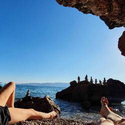 Wir verlassen die Insel Cres mit einer Fährfahrt nach Krk, um wieder auf das Festland zu kommen. Ein traumhafter, naturbelassener Campingplatz erwartet uns am Abend. Wir sind sprachlos. Wir sindLeggi altro
