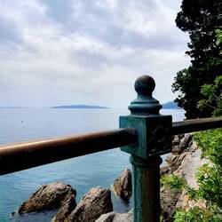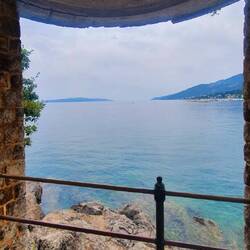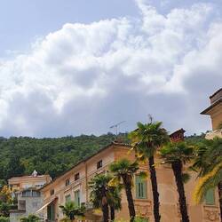 Heute ist es etwas bewölkt. Nach dem Frühstück und einer Frisur für Jeannine starten wir früh ins Städtchen Opatija. Mit einer kleinen Abkühlung zwischendurch schaffen wir die Strecke von 4 kmLeggi altro