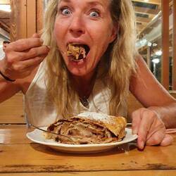 Fahrradtour zum Wasserfall Slap Savica. Ein Ausflug voller Überraschungen. Bei Jeannine reißt die Fahrradkette. Oben angekommen erwischt uns ein Gewitter mit Regen und Hagel. 2 Stunden späterLeggi altro