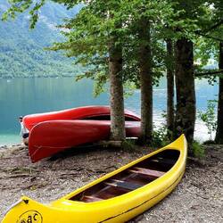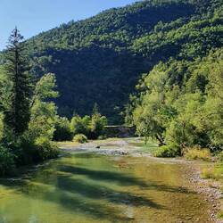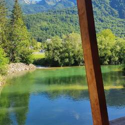 Letzter Campingplatz auf der Durchreise durch Slowenien "Bohinj Camp Danica". Die Campingplätze sind überfüllt, aber wir haben noch einen tollen Platz direkt am Fluß Sava Bohinjka gefunden. HierLeggi altro