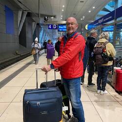Thursday – With a day full of uncertainty we got up at 07:00, had a quick breakfast and shower and caught the bus to Stuttgart main railway station. We weren’t the only ones and lined up for an hour before finally speaking to a very helpful DB employee. He managed to book us seats on the 15:23 train to Frankfurt with a 16:35 connection to Utrecht in Holland. Just outside Frankfurt our train stopped and was delayed due to another train also running late, arriving at 17:00. Luckily our connecting train was also delayed and we departed thirty minutes late. At Bonn the train stopped unexpectedly, and we were asked to collect our baggage immediately and go across the platform to another train waiting on the opposite side of the platform. Whilst looking for carriage 38 we were directed to immediately board at carriage 35 as the train was leaving and we had to battle our way on the train through the stream of humanity travelling in the opposite direction with their suitcases, down the narrow passageway, looking for their seats. With our big bags it became quite a challenge. Arrival at Utrecht was forty-five minutes late. Station information staff were very helpful with directions to platform 20 and getting us through the barriers which refused to read our ticket bar codes. We arrived at Zoetermeer Oost at 22:30 on an empty, dark platform with light rain falling. The Dutch trains don’t have blue tooth which left us without communications and unable to contact Tineke and Bas. We found Bas patiently waiting for us at the railway crossing at the end of the platform, although we had been unable to contact him to inform of our arrival time. Once at Tineke and Bas’ house there was a very warm welcome followed by coffee and a long conversational chat which lasted until 01:45. What beautiful kind people Tineke and Bas de Vet are.Read more