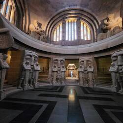 German: Völkerschlachtdenkmal, is a monument to the Battle of Leipzig fought between 16 and 19 October 1813, also known as the Battle of the Nations, and was built between 1898 and 1913. The monument commemorates the defeat of Napoleon's French army at Leipzig, a crucial step towards the end of hostilities in the War of the Sixth Coalition. The coalition armies of Russia, Prussia, Austria and Sweden were led by Tsar Alexander I of Russia and Karl Philipp, Prince of Schwarzenberg. There were Germans fighting on both sides, as Napoleon's troops also included conscripted Germans from the left bank of the Rhine annexed by France, as well as troops from his German allies of the Confederation of the Rhine. About half a million soldiers were involved and at the end of the battle, around 110,000 men had lost their lives, with many more dying in the days after in field hospitals in and around the city. The scope of the fighting was unprecedented. The Battle of the Nations was the decisive one in the war, cementing the French defeat and temporarily ending Napoleon's rule. The Emperor was exiled to Elba in May 1814, but briefly returned to power the following year, before being permanently banished following his defeat at the Battle of Waterloo. The monument is 91 meters tall and contains over 500 steps to a viewing platform at the top, from which there are views across the city and environs. The monument is said to stand on the spot of some of the bloodiest fighting, from where Napoleon ordered the retreat of his army.