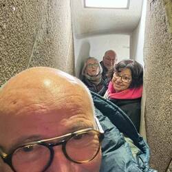 Monday – Wal’s (Kees’) birthday. Brigitte and Andreas woke us up with a coffee and a birthday candle and gift, a beautiful photo in frame. There were many birthday messages which required a response, so we stayed in bed a lot longer. After our standard breakfast of orange juice, coffee, bread rolls, cheese and cut meats, we had our shower and departed for the Volkerschlacht-denkmal military memorial. This is the battlefield where Napoleon’s army, in October 1813, was defeated by the combined forces of Austria, Prussia, Sweden and Russia. The battle involved 560,000 soldiers with 133,000 casualties. This was known as the "Battle of the Nations". Inside the memorial we took the 364 steps to the top for a magnificent view of the surrounding countryside. Before going home, we stopped at the railway station to confirm our train bookings to Stuttgart. To our dismay the train we had booked and paid for in Australia had been cancelled but no notification sent to us. To arrange another service, we had to pay an extra fifty euro on the basis that we had made a change to our bookings and on top of that there were only first-class seats still available. The whole attitude from DB was very unprofessional and disappointing. Lunch was at home followed by a relaxing and welcome quiet afternoon as the snow continued to lazily drift down.