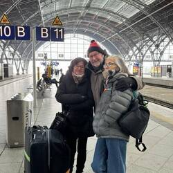 Thursday - After a reasonably comfortable flight we arrived at Frankfurt International Airport at 06:15, The train to Leipzig was on time as expected in Germany and after shoveling our heavy suitcases around we were able to settle down to a comfortable trip, arriving in Leipzig at 12:15. Brigitte and Andreas waiting on the platform welcomed us with bear hugs. The car trip to the apartment was very quick as Leipzig is not a big city and it is possible to walk from the train station to their apartment. Lunch was chocolate biscuits followed by a walk into Leipzig city center. We visited the two main churches, the Nikolai church and the Saint Peters church, and then wandered around the streets until dark. Mind you it gets dark at 17:00 in winter and very cold so we returned home for a light meal and friendly dialogue. We’re all tired and Sylvie fell asleep at the table, something she has never done before. Early night today.