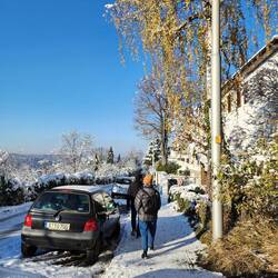 Sunday – Outside it’s a snowy and cold day but it’s not raining and will be perfect for walking. Martin had organised a typical German breakfast with cereal, bread, cheese and meat and of course lots of coffee. Our first destination using the tram was Fernsehturm (TV Tower) on the high ground above Stuttgart. The views are spectacular and on a fine day it is possible to see as far as the Black Forest. The temperature at the top though was quite bitter and with the wind well below freezing. Walking from the tower back to the tram through the snow-covered forest was a magical return to my childhood, awakening memories long forgotten. Our next stop was the lookout at Eugensplatz with great views over the city and distant vineyards, this was followed with the Weisenburgerpark lookout and then a long walk through the forest along the Alte Weinsteige to the Tea House, which was unfortunately closed. By dark, which is quite early in wintertime Germany, we reached the Christmas markets in Stuttgart's Schlossplatz with the wonderful old castle in the background. A quiet evening at home with a glass of wine. Martin lives a more spartan existence and also goes to bed much earlier so we were always guaranteed a good long sleep.
