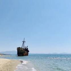 ...liegt seit ca. 30 Jahren am Strand rum und verrottet, ich hatte ja schon erwähnt, dass die Griechen nicht so die großen Aufräumer und Putzer sind...