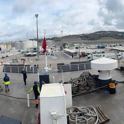 Da der vorhergesagte Sturm kein laues Lüftchen werden soll haben wir Sorge, dass die gebuchte Fähre von Tanger Med nach Algericas gecancelt wird. Also überlegen wir uns in den sauren Apfel zu beißen und noch ein Ticket zu kaufen, von Tanger nach Tarifa. Wir fahren also nach einem schnellen Frühstück zum Hafen, der ist nur fünf Minuten vom Hotel, um festzustellen: alle Fähren nach Tarifa sind bis auf weiteres gecancelt. O-Ton: maybe tomorrow! Na toll!