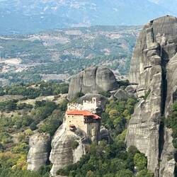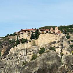 Die beeindruckenden Sandsteinformationen im Meteora-Gebiet sind heute noch die Heimat von 6 orthodoxen Klöstern, früher wohl rund 20. Wir haben ein Männerkloster und ein Frauenkloster besichtigt,Read more