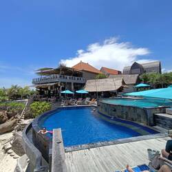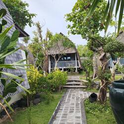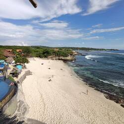 isch ä chlini insle vor bali. nach ere 30 minütige schiffahrt si mer uf lembongan acho. hei grad e töff gmietet u di zur dream beach gfahre. üses daheim für 3 nächt.