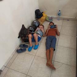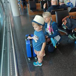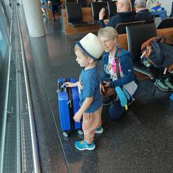 nach 12 stunden flug sind wir gut gelandet. janne fand das fliegen cool. da kann man gut essen und fernseh gucken...