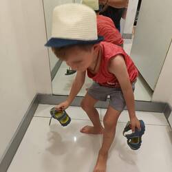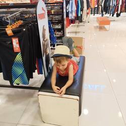 wegen dem sehr warmen wetter gab es kleidermangel, der heute behoben wurde. im grossen outlet konnte nach lust und laune geshopt werden. einen interessierte das aber wenig. er probierte alle im ladenLæs mere