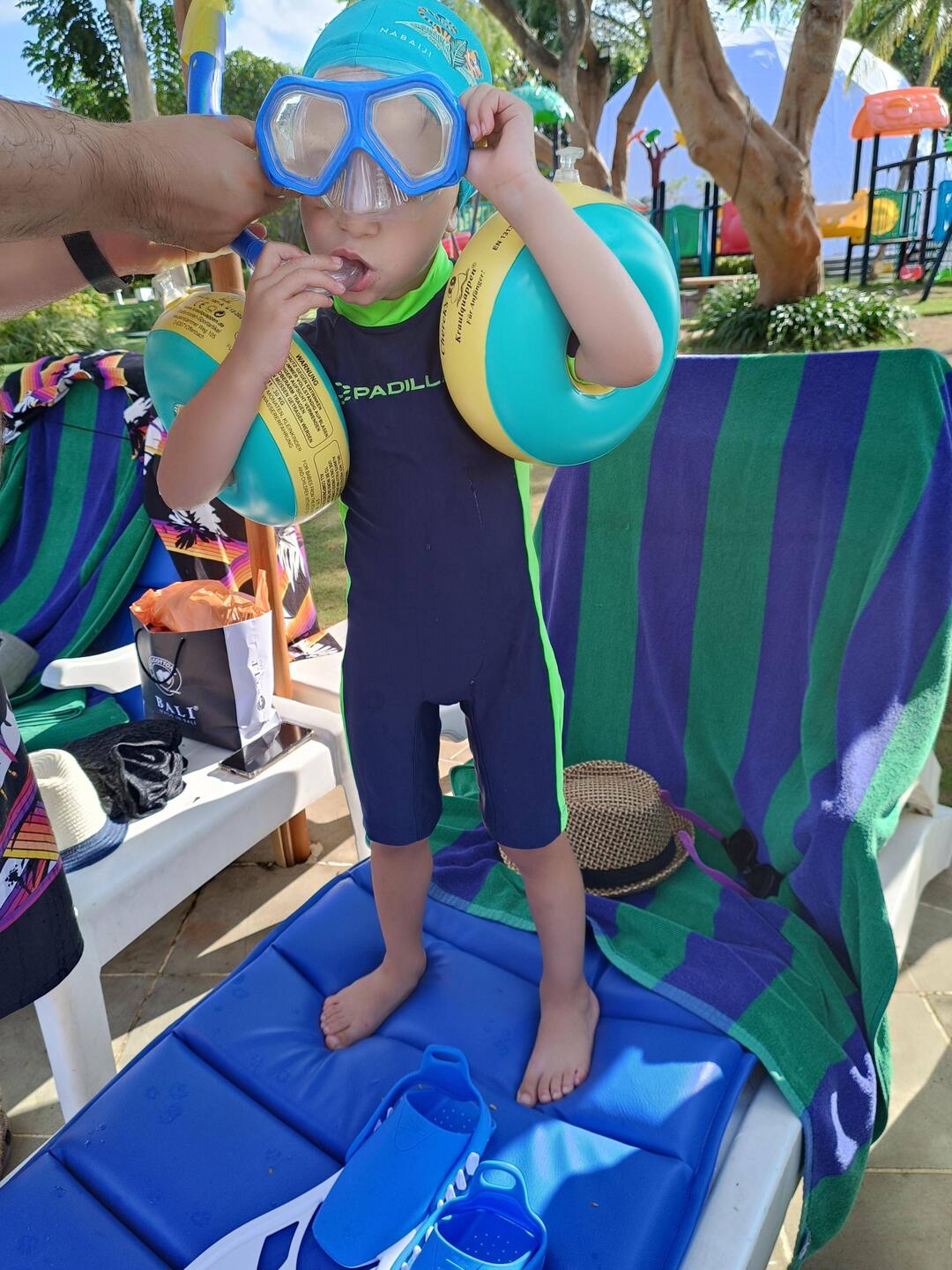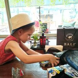 wir sind sehr stolz, dass janne mit dabei ist. zuhause hat er bedenken geäussert, dass er nicht so viele spielsachen mitnehmen kann. so habe ich ihm versprochen, dass er am ersten tag in bali mit opaLæs mere