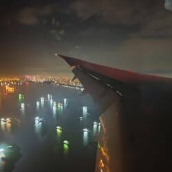 in singapur angekommen. janne nimmt mit schwung anlauf zum flugzeug...
