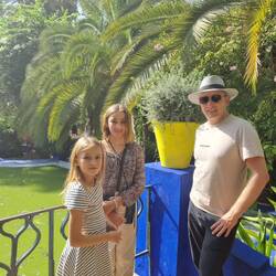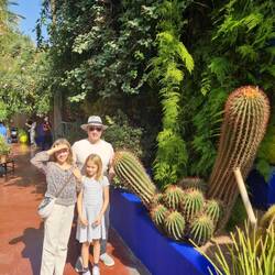 Um 10:35 Uhr fährt uns ein Taxi zum Jardin Majorelle, die wahrscheinlich meistbesuchte Sehenswürdigkeit von Marrakesch. Die Anlage gilt als einer der schönsten Gärten weltweit und wurde Anfang des 20. Jahrhunderts vom französischen Maler Jacques Majorelle geschaffen - ihm zu Ehren ist auch das im Garten oft verwendete "Majorelle-Blau" benannt. 1980 wurde der Garten von Yves Saint Laurent aufgekauft, welcher den mittlerweile verwilderten Garten wiederherstellen ließ und wohl hier viel Inspiration für seine Modekollektionen fand.
