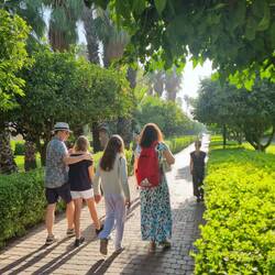 Es geht mit dem Bus in die Altstadt zur Koutoubia-Moschee, hier waren wir ja versehentlich gestern schon mal. 😅 Heute gibt es eine Stadtführung mit einem einheimischen Guide, wir laufen um die Koutoubia-Moschee und durch die angrenzenden Gärten (wer wusste, dass Orangenblütenöl aus den Blüten von Pomeranzen- und nicht Orangenbäumen gewonnen wird?).