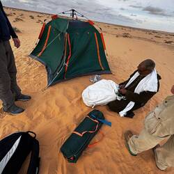 Helping Bedouin with his tent