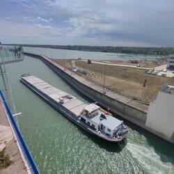 Ominous sounds of rainfall were heard throughout the night so it was with some trepidation the curtains were drawn. Damp but not raining. Breakfast, grabbed bike & paid. Back down to the Danube forLes mer
