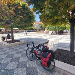 An alfresco breakie for once this trip and not a bad spec either in the hotel courtyard. Once packed, had a little mooch around Gyor then headed off. Wasn't long before the cycle lanes began & thisLes mer