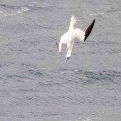Heute war es ordentlich stürmisch und die See wogte ordentlich. Brecher um Brecher schlug gegen die Küste. Erstaunlich war es, dass die Basstölpel immer noch jagten. Man sieht sie elegant durch denもっと詳しく