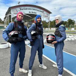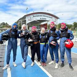 Um 9:00 Uhr holt uns der Fahrer im Hotel ab. Erster Stop ist Betim. Wir stoppen nach einer holprigen fahrt an einem See. Wir geniessen die Ruhe, die Sonne und schwimmen etwas im kühlen Wasser. Nach einer Stunde fahren wir weiter. Wir stoppen bei der internationalen Kartbahn in Betim. Wiedereinmal wird uns die fehlende "AHV Nummer" zum Verhängnis. Es dauert eine Ewigkeit, bis er uns einchecken kann. Irgendwann funktioniert es doch noch. Nach einigen Instruktionen werfen wir uns ins chice Renndress und warten bis unser Rennen beginnt. Wir sind 30 Fahrer:innen. Nach einer Einwärmrunde folgen 5 Minuten Qualifying. Danny und Marvin starten ziemlich weit vorne, Thomas im Mittelfeld, da er beim Start in eine Kollision verwickelt war. Zeno und Jenny machen das Schlusslicht und rollen das Feld von hinten auf.