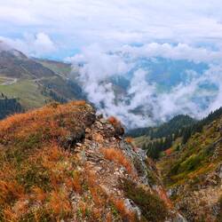 Es ist schon eine kleine, liebgewonnene Tradition – ein paar Tage am Wilden Kaiser im Herbst in einer wunderbaren (für eine Person perfekte!) Ferienwohnung mit Blick vom Bett auf den Koasa. Denn der Herbst hat gerade in den Bergen so wundervolle Farben und eine herrlich klare Luft! Doch in der Tourenvorbereitung machte mich der Wetterbericht schier narrisch: einmal die ersten drei Tage Regen und Schnee, dann wieder nur Sonnenschein, dann ein Tag mies und zwei Tage gegen Ende meines Aufenthalts herrlich, aber kalt. Also hieß es, für alle Wetterlagen Optionen ins Auge fassen. Für den Anreisetag wollte ich nicht gleich 1000hm abreißen, sondern mich einwandern. Zudem war es sehr bewölkt gemeldet, daher am besten ne Tour mit Wegerlebnis, weil die Sicht mies werden könnte. Und das wurde sie am Anfang so richtig.