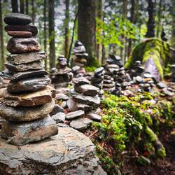 Der schlechteste Tag der Woche war gemeldet - aber beim Aufstehen war zwar alles grau und trüb, vom Kaiser nichts zu sehen, aber es war trocken. Also eine kleine Runde sollte drin sein und weil ich keinen Bock auf Auto hatte und Astberg immer geht - also auf zum Astberg. Auch ein guter Test für einen Wunsch, den ich mir zum 40. gerne erfüllen würde - Sonnenaufgang am Astbergsee für mich allein, auch wenn damit eine besondere Erinnerung verbunden ist und immer sein wird. Kaum bin ich an den letzten Häusern von Going vorbei, fängt es an zu regnen, mal mehr, mal etwas weniger. Aber egal. Mein Motto heute: Bei schönem Wetter kann ja jeder wandern! Und Hauptsache draußen und in Bewegung. Der Weg ist bekannt und wechselt zwischen Wiesen-, Waldpfad und Forstwegen, mal richtig steil, mal eher wie ein Höhenweg. Kein Mensch ist unterwegs, am Abstieg begegnen mir nur einige Kühe, aber die interessieren sich fürs Gras und nicht für mich. Nach 1:12 Stunden hab ich die rund 500hm geschafft, die Wolkenstimmungen haben was, das Lieblingsplatzl steht noch immer da und verleiht dem Astbergsee was - zusammen mit der kleinen Brücke. Das Kaiserkino hat heute keine Vorstellung. Dennoch kommen Erinnerungen hoch an den wohl erhabensten Moment in den Bergen bisher - den Sonnenaufgang vor ziemlich genau drei Jahren hier oben. Diesmal knipse ich nur ein paar Bildchen, genieße die Stimmung - denn nun habe ich schon fast alle Wetterlagen am Astberg erlebt - und marschiere wieder hinunter. Die heiße Dusche ruft immer lauter. In einem Waldstückchen wartet plötzlich eine Armada an Steinmandeln! Ich lege auch ein Steinchen dazu und sammle gleich noch ein paar besonders schöne Exemplare am Wegesrand ein - eines erinnert an ein Herz und mich an die Zeit vor einem Jahr: Es schlägt noch und bringt mich durch die Berge. Den Nachmittag darf ich dann mit meiner lieben Vermieterin Christine verbringen - weil ich seit fünf Jahren komme und damit schon als Stammgast gelte. Das Café Liebevoll in Oberndorf ist knuffig, der Kuchen hausgemacht und lecker. Wir legen noch einen Stopp zum Sturm in St. Johann ein - ein Örtchen, das man wieder besuchen sollte.Baca lagi