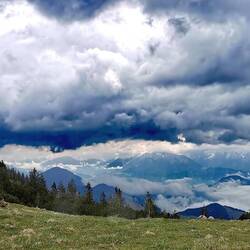 Der Tag begann wunderbar sonnig, so dass in meiner wundertollen Ferienwohnung mit Blick auf Breitenstein, Miesing, Kühe und Schafe ein Frühstück draußen möglich war - ein Traum! Doch die Wolken ließen schon erahnen, dass es nicht so bleiben würde. Also eine kurze, aber dennoch interessante Tour. Nachdem ich im Januar bei der Wanderung zum Sonnenaufgang mit Tom zur Lacherspitze bei etwas über Halbzeit aufgegeben hatte, erschien mir diese 3-4 Stunden aufgrund des Wetters optimal. Und ich hatte mit diesem Gipfel eine Rechnung offen. Also tuckerte ich zum Sudelfeld los - der Himmel bereits eine bunte Mischung aus blau mit hübschen Wölkchen und grau bis drohendem Regengrau. Auch hier ein toller Pfad über Almwiesen und an schönen Hüttchen vorbei bis zum Abzweig unterhalb des Lacherkars. Es hatte zwischenzeitlich kurz gegraupelt oder leicht geschneit. Aber ich wollte da hoch, der Turbo lief reibungslos und bis zu der Stelle war ich im Januar ja schon gekommen. Faszinierend, wie anders die Natur doch jetzt aussieht. Also rein ins Kar, der Pfad wird steiler, die Wolken phasenweise dunkler, es schneit erneut leicht, der Wind ist kühl, aber schon bin ich oben am Sattel. Und was die Wolken für Stimmungen zaubern - fantastisch! Der Wendelstein ist zum Greifen nah - was für ein Aufbau an Zahnradbahn und Häusern, die Kapelle ist zu sehen. Eine gute Stunde wäre es noch, aber angesichts das Wetters ist das keine Option. Ich nehme das Weglein durch Latschen, das mich begeistert und stehe nach zehn Minuten unterhalb des großen Felsens mit dem Kreuz. Ein paar Meter kraxeln und ich bin nach 1:30 Stunden (statt 2) und 650hm oben. Mega! Und das Beste: Das Schneien lässt nach, plötzlich tut sich ein blaues Loch samt Sonne auf - ich bleibe wider Erwarten sitzen und schnabuliere meine Brotzeit und knipse wild Richtung Wilder und Zahmer Kaiser, den Wendelstein mit den bedrohlichen Wolken im Hintergrund. Wieder kein Mensch. Zu gern wäre ich geblieben, aber die Wolken mahnen mich zum Rückweg auf dem Aufstiegsweg. Das nächste Mal vielleicht übers Wildalpjoch auf den Satteln und dann zum Wendelstein ;-)Leer más