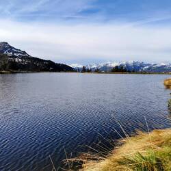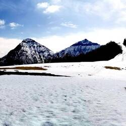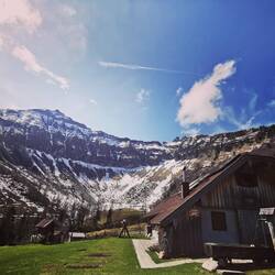 Wenn man so will, hab ich Ende März meine vorgezogene April-Wanderung gemacht (wobei ich ja jetzt schon ein Plus an Touren habe *megafreu*), weil es sich einfach anbot: Denn ich hatte mir beim LFI Salzburg einen eintägigen Milchverarbeitungskurs gebucht, um mich weiter fitter in Sachen Alm zu machen, bevor ich das mit einer Alm-Zeit allein echt mal angreife. Und nachdem der Kurs bei Salzburg war und morgens schon anfing, lag es nahe, einen Tag früher zu fahren und wandern zu gehen. Zumal mir das Wetter mal wieder hold war. Allein schon der Sonnenaufgang, den ich auf der Autobahn genießen konnte, lohnte das frühe Aufstehen: welche Farben und dann die glutrote Kugel der Sonne, die sich langsam am Horizont gen Himmel schiebt! Bis kurz vor der Abfahrt war ich mir nicht sicher, welche Tour ich wohl machen würde - vielleicht was bei Berchtesgaden, weil ich da sonst weniger hinkomme. Wie würde die Schneelage sein, nachdem das Wetter die Tage vorher ja nicht so toll war? Aber ich war mal optimistisch (ist ja sonst nicht meine Art ...), bin davon ausgegangen, dass in den von mir angepeilten Höhen nicht mehr viel sein würde (ausgehend vom Wochenende vorher im Chiemgau/Wendelsteingebiet) und nahm die Tour am Hintersee bei Hof bei Salzburg, weil wenn ich schon mal dort bin. Die Runde über drei Gipfel mit tollen Gratüberschreitungen las sich toll, aber auch anspruchsvoll. Und als ich die Gipfel sah, war ich nicht mehr sicher, ob das angesichts des Schnees gehen würde, aber rauf und versuchen! Ich wählte statt Forststraße den Steig hoch zur Genneralm - richtige Wahl: cooler Steig durch den Wald über Steine, Wurzeln und manchen Bachlauf. Schwarz, wie er markiert war, war er aber sicher nicht. Oben auf der Hochfläche auf rund 1300m (etwa 400hm Aufstieg) strahlte die Sonne - und der Schnee... Davon lag noch recht viel herum, weil er weich war, sank ich oft - tief - ein. Doch noch war er nicht überall. Der erste Teil des weiteren Aufstiegs war frei und grasig; dann folgten Steinblöcke und Serpentinen im Geröll, in dem auch Gamsen ihren Spaß hatten. Meiner verringerte sich trotz einer super Aussicht - dafür hatte sich der Weg schon gelohnt - immer mehr: Geröll und Weg verschwanden unter Schnee - ich beschloss es aus Sicherheitsgründen zu lassen; immerhin kannte ich die Strecke gar nicht. Plan B reifte schnell: Wenn die Runde oben rum nicht geht, dann eben unten. So wurde aus einer Drei-Gipfel-Tour eine Drei-Almen-Runde. Also auf dem Forstweg runter zur Abzweigung zur Gruberalm und von dort über einen malerischen früheren Almweg rein in den Kessel, über den sich die drei Gipfel beeindruckend erheben. Von dort über Wiese und Wald mit zig umgestürzten Bäumen auf dem Pfad, unter und über die ich mich schlang und krabbelte, hinauf Richtung Feichtensteinplateau. Vielleicht würde ja wenigstens der dritte und niedrigste Gipfel gehen .... aber der Schnee.... Die Hochfläche mit ihren Almen auf rund 1300m hielt die weiße Pracht ebenfalls parat. Trotzdem stapfte ich noch weiter - zumindest bis zu dem einen Hüppel noch, bevor dann die Schneeschicht geschlossen wurde. Das Drei-Gipfel-Massiv machte Lust, das Ganze ohne Schnee nochmals zu versuchen. Damit wenigstens noch ein Gipfelerfolg steht, marschiere ich rüber zum Feichtenstein mit Kreuz und Blick auf den Hintersee. Meine Füße sind inzwischen nass vom hineingefallenen Schnee, der teils echt eisig ist. Die Sonne tut Herz und Seele gut, aber den Wind hätte jemand abschalten können, dann hätte ich mir einen Liegestuhl da oben in der Ruhe der Almen gewünscht. Also gehe ich wieder nach unten - auch ohne Grattour mit etlichen Kilometern und Höhenmetern. Und zusammen mit einem megagenialen und interessanten Milchverarbeitungskurs war das ein gelungener Ausflug ganz nach meinem Geschmack! Aber Schnee kann ich etz keinen mehr sehen!Read more