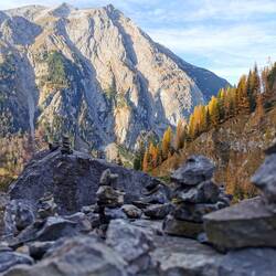 Seit drei Jahren sind ein paar Herbsttage am Wildern Kaiser in der kleinen, gemütlichen Holzseele mit Bettblick auf den Koasa bei meiner lieben Christine ein Muss. Auch in diesem Jahr hatte ich mich wahnsinnig auf die Auszeit gefreut, auf gutes Wetter, herbstliche Farben, Ruhe und vielleicht den Besuch eines besonderen Menschen. Und dann: Kurz vorher die Diagnose Entzündung am Herz und daher Herzstolpern. Die Folge: Verbot von körperlicher Belastung. Meine Gipfel- und Tourenpläne - dahin. Daheimbleiben war aber keine Option, ich musste raus und ich weiß, die Berge tun meiner Seele gut. Also entwarf ich einen Plan B mit Panoramawegen und Spaziergängen. Letztlich wanderte ich bei Sonnenschein und einmal bei Nieselregen um den und im weiteren Umkreis des Schwarzsees, erklomm den Rauhen Kopf (mit Seilbahnhilfe bis zum Astberg) und genoss eine wunderbare Tour am Kreuzjöchlsee. Immer war die Angst dabei, dass es mit dem Herz nicht mehr weggeht, dass ich nie wieder hoch hinaus kann beim Bergsteigen, dass ich mich überlaste, dass ich meine Kondition einbüße. Doch obwohl ich langsam ging, war ich nie langsamer als die angebenen Zeiten, ich hab alles geschafft und vielleicht sogar ein bisschen mehr genossen. Immer hörte ich genau in mich hinein, wie und ob das Herz rumpelte. Dennoch taten das Wandern, die Ausblicke, die Natur gut, lenkten den Kopf oftmals ab. Der macht sich weiterhin Gedanken um die berufliche Zukunft und fragt sich, ob nicht ein Job in den Bergen für eine längere Zeit eine Option wären... Doch nun gilt es erst einmal, das Herz wieder in den Griff zu bekommen, damit es spätestens im Frühjahr wieder richtig auf den Berg geht und auch die Fitness für eine Zeit auf der Alm wieder da ist. Parallel heißt es fürs Herz loslassen von einem Menschen, der vielleicht immer meine Schwäche sein wird. Auch wenn die Tage am Koasa anders waren als geplant, sie waren dennoch Balsam für die Seele. Denn der Kaiser ist einfach ein erhabenes Gebirge und die Farben des Herbstes leuchteten schon schön. Meistens war ich allein unterwegs und genoss die Ruhe und Einsamkeit. Dabei erfreute ich mich an coolen, abwechslungsreichen Wegen, den Blicken in die Ferne, einer überraschend gefundenen Schaukel, den Details der Natur und den fantastischen Bildern, die sie malt - selbst im Regen.