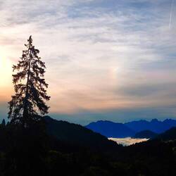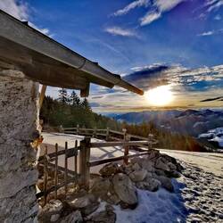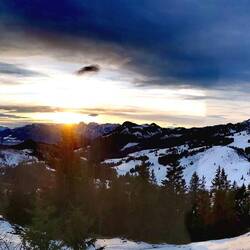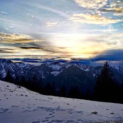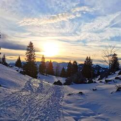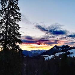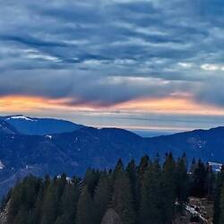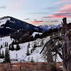 Für 2024 hatte ich mir ja vorgenommen, im Schnitt jeden Monat einmal wandern zu gehen - weil es nicht nur der körperlichen, sondern vor allem der seelischen Gesundheit so unfassbar gut tut! Nachdem das Vorhaben 2024 schon bestens geklappt hat, hieß es für mich: einfach weiter machen! Und dank Resturlaub und der lieben Einladung einer Insta-Bekanntschaft - ein echter, aber voll netter Wanderverrückter und hammer fitter Sportler - zum Wander-Blinde-Date, standen sogar zwei Touren im Raum - mit Sonnenauf- und -untergang, wenn es das Wetter zulässt. Sonnenuntergang hatte ich noch nie - eine traumhafte Vorstellung, das einmal erleben zu dürfen. Und das Wetter sah gut aus. Auch wenn klar war, dass es aufgrund von Sonnenuntergang und meiner zeitlichen Anreise keine Megatour werden würde, war mein Respekt durchaus groß: Nach fast vier Monaten fast ohne Sport mit einem echten Bergfex zu gehen - kann ich da mithalten? Wie verkrafte ich die Belastung? In Birkenstein ging es los - auf breitem Forstweg konnte ich zügig starten und fühlte mich gut. Dazu eine angeregte Unterhaltung mit viel Spaß und Lachen und immer wieder der Blick gen Himmel, was denn die Wolken wohl tun würden. Zwischendrin waren ein paar eisige Stellen die einzigen echten winzigen Herausforderungen, ansonsten stapften wir zügig voran zum Schweinsberg auf 1514m. Spätestens ab der Kesselalm wird der Blick weiter, der Forstweg wird langsam zu einem Pfad und am Ende steinig-wurzeligem Steig - genau mein Geschmack. Vor dem letzten Gipfelaufschwung erscheint auf einer kleinen Hochebene der Wendelstein zum Greifen nah! Unterwegs ist nun keiner mehr. Flugs sind wir die letzten Höhenmeter auf den kleinen Grat hinaufgestiefelt und genießen ein tolles Panorama. Jetzt heißt es warten und beobachten. Die Bilder, die Sonne und Wolken an den Himmel vor den Berggipfeln zaubern, sind einfach erhaben! Auch wenn es am Ende kein ganzer Sonnenuntergang wird, weil die Wolken reinziehen - es hat sich sowas von gelohnt. Alle Sorgen sind vergessen, der Moment zählt. Auch bei der Brotzeit mit Wein am flackernden Kamin zum Ausklang am Abend.