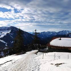 Das Wetter sollte auch an diesem Tag besten sein - trotz herannahenden Saraha-Staubs - und deswegen hatte ich einfach in Bayrischzell ein Zimmer gebucht, um gleich noch eine Tour mitzunehmen, und zwar eine, die angeblich in keinem Gipfelbuch fehlen darf - der Brünnstein. Hier lockte mich nicht nur diese Tatsache, sondern auch der Weitblick und vor allem die Kraxelei. Auch wenn ich Bilder davon gesehen hatte und wusste, dass ich das schaffe, dass der Steig schneefrei ist (ganz wichtig!) und das genau mein Ding ist, war es die nächste Challenge - in Kombi mit der Tour vom Vortag und erneut rund 900hm. Eines nahm ich mir vor: Ich geh da hoch, ich schaffe das, aufgeben ist nicht! Wieder bei blauem Himmel und Sonnenschein marschierte ich ab der Rosengasse los - was für ein Kälteloch! Die ersten 100hm waren in nicht ganz 15 Minuten absolviert - es lief also. Und das Beste: Weil die Hütten noch nicht offen haben, war ich am Hinweg komplett allein unterwegs, insgesamt sah ich nur vier Menschen - ein Traum! Der Weg ebenso: ein schöner Pfad durch Wald, dann wand er sich moderat steigend und fallend an Almwiesenhängen entlang - mal mit mehr, mal mit weniger Schnee. Dabei war nichts zu hören außer das herrliche Gezwitscher der Vögel! Auch hier war ich schnell im T-Shirt unterwegs. Wie schön muss man es als Kuh hier oben haben! Einmal folgte ich in einer Schneepassage ein paar Meter den falschen Spuren, richtig verwirrend wurde es dann oben im eingeschneiten Kessel der Seeon-Alm: Plötzlich jede Menge Spuren, kein Wegweiser. Wohin gehen? Erstmal den meisten nachgehen - und die führten mich tatsächlich zur Alm, doch da zeigte der Wegweise zum Brünnsteinhaus in die Richtung, aus der ich kam. Also Beschreibung nachlesen, Umgebung beobachten, umdrehen und die anderen Spuren nehmen. Der Bereich da oben im Schnee war echt anstrengend, da man immer mal wieder tiefer einsank; beim Rückweg wurde es im aufgeweichtem, sulzigen Schnee noch lustiger und kräftezehrender. Auch hier war zum Denken nicht viel Luft im Kopf (aber mein Plan in Sachen Arbeit steht: das, was ich mache, kann ich und mach ich gern; daher solange ich die Veränderungen mitgehen kann, bleiben, parallel umsehen und Neues ausprobieren vor allem in Sachen Alm). Doch nach dem Kessel öffnete sich der Blick und auf einmal sah ich links oben auf einem unbewaldetem Zacken ein kleines Häuschen - mein Ziel! Erst ging es runter zur Hochfläche der Himmelmoosalmen und ab da an wurde die Aussicht trotz leicht trüben Himmels immer fantastischer: vom Wilden Kaiser bis zum Trainsjoch. Rasch lief ich zum Brünnsteinhaus und stand vorm Einstieg zum Julius Mayr Weg: 40 Minuten bis zum Gipfel, Trittsicherheit und Erfahrenheit nötig. Bislang lag ich trotz Verlaufens in der Zeit. Wie schwer würde es nun werden? Reichen die Kräfte? Denn die Beine begann ich nun zu spüren: Über Steine und Wurzeln ging es auf schmalem Pfad Richtung der großen Felsen. Dann die ersten Leitern, Tritte und Seile, ein Felsdurchgang, manchmal etwas Kletterei. Meine Begeisterung grenzenlos, die Anstrengung wuchs und der Gedanke mit Blick nach oben: Etz muss ich doch geich da sein. Und dann noch eine kleine Kuppe und plötzlich ein Schild und in einem kleinen Steinmeer auf dem ausgesetzten Plateau die Brünnsteinkapelle - Glück und Stolz durchströmen mich! Nächste Challenge gemeistert und das in nur 35 Minuten inklusive diversen Fotostopps! Ich umrunde das Häuschen, schieße Fotos mit Panorama von allen Seiten, raste im frischen Wind und nehme den Abstieg auf der anderen Seite in den Blick: Über Seile und Tritte geht es senkrecht über puren Fels ein erstes Stück nach unten. Ich gehe da einen großen Teil rückwärts. Dann über einen Pfad in Wald und Wiese zu den Himmelmoosalmen auf der schönen Hochebene und auf bekanntem Weg zurück. Mega Tag - mehr bleibt nicht zu sagen.Read more
