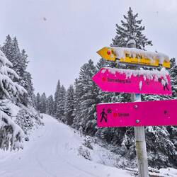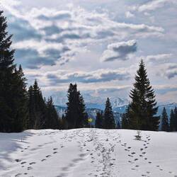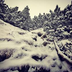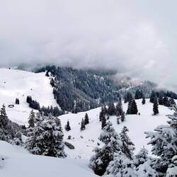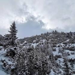 Neuer Monat, neue Wanderung. Da der Februar mit Arbeit, Tanzen und anderen Erledigungen sehr voll ist, blieben nur wenige Möglichkeiten, fürs Wandern frei zu nehmen. Nachdem ich zudem am nächsten Tag zum Fußballturnier meines Patenmädchens in Ingolstadt wollte, bot sich der Valentinstag an - irgendwie auch eine perfekte Zeit für mich, die das Alleinsein nicht scheut. Der Plan: In den Bergen wandern gehen, dort übernachten und dann nach Ingolstadt düsen. Mit dem total coolen Gasthaus "RamsAu" in Bad Heilbrunn (super Mischung aus Tradition, altem Haus, Pfiff und Moderne, leckeres Essen und Rosesekt - das ich genussvoll alleine genossen habe) war die Unterkunft schnell gefunden; die Tourenfindung gestaltete sich schwieriger, weil es neuen Schnee, Dauergrau und Schneefall geben sollte. Nach dem Wälzen und Überlegen von diversen Wanderungen, entschied ich mich fürs Trainsjoch - hätte ein schöne Aussicht und eine für das Wetter gute Kombi aus Forstweg und gut begehbaren Pfaden. Allein die Höhe und damit Schneehöhe konnte ich nicht einschätzen - aber wer nicht wagt, der nicht gewinnt! Los ging`s denn morgens um 8.30 Uhr am Ursprungpass - schon alles etwas gezuckert und mit leichtem Schneefall. Der sollte mich den ganzen Tag mal mehr mal weniger begleiten. Neben einem Bach wanderte ich im Wald auf dem Forstweg bergan, wechselte dann doch auf den abkürzenden Pfad; wenn er zu blöd zu gehen ist, wäre ich einfach wieder auf den Forstweg umgedreht. Aber über leicht angeschneite Steine und Wurzeln auf schönem Steig wanderte ich in einen superschönen Kessel mit einigen Almen - das Zwischenziel Mariandlalm im Blick. Wie idyllisch wird das im Sommer mi Kühen sein! In der Mariandlalm brannte Licht - eine Option für den Rückweg. Ansonsten war einfach nur Stille und Einsamkeit. Ich ging weiter auf dem Winterweg, der das Trainsjoch auf einem stetig leicht ansteigenden Höhenweg unterhalb umrundet, um dann über einen Sattel links den letzten halbstündigen Gipelaufschwung zu nehmen. Der Weg bis kurz vor dem Sattel war trotz Schnee recht gut erkennbar, maximal zwei Fuß breit am Hang entlang - mal auf einer Wiese, mal zwischen wunderbar und künstlerisch angeschneiten und gefrosteten Tannen und Latschen. Vor und unter mir unberührter Schnee - stets ohne Schneeschuhe und Grödel machbar. Ich genoss den Weg, die Stimmungen der Wolken am Himmel, die Schneekunst, die Einsamkeit und plötzlich waren da sogar Sonnenstrahlen und winzige blaue Flecken am Himmel! Eine Stelle mit Almen auf der anderen Satteseite war wie von einem Scheinwerfer beleuchtet - wie toll das aussah! Klar, es gab drei, vier Stellen, da dachte ich kurz, ob es besser wäre, umzudrehen - weil der Weg nicht 1000prozentig sichtbar war, weil ich ein paar Mal etwas eingesunken bin, weil der vermeintliche Gipfel im Grau versank. Aber ich bin mega froh, dass ich nicht aufgegeben hab! In der letzten halben Stunde war in den Latschen sogar an ein paar Stellen etwas Kraxeln angesagt - etwas blöd mit Schnee und dann dadurch nassen Handschuhen/Fingern. Aber am Ende wurde alles wieder warm. Und dann war das Gipfelkreuz, verziert von frostigen Kristallen, plötzlich sichtbar und da - samt Kästchen fürs Gipfelbuch mit Mini-Kreuz. Sicht leider null, aber dafür war der Weg abwechslungsreich. Und: ich hab die 900hm in rund 2:15 Stunden geschafft - mindesten 15 Minuten schneller als die vorgegebene Zeit. Das war ein wichtiger Selbstbeweis und -test für mich - inklusive des Durchziehens. Auf dem bekannten Weg marschierte ich zurück zur Alm - immer noch allein. Wie auch dort. Drinnen am warmen Kachelofen und mit Kuscheleinheit mit dem Alm-Kater sowie netter Plauderei mit der Wirtin gab's Kakao, leckeren Topfenstrudel und noch viel leckereren Haselnuss-Schnaps. Ja klar, blauer Himmel und Sonnenschein - wie dann am nächsten Tag bei Frost - wäre noch toller gewesen, aber für das Wetter hab ich alles richtig gemacht; es war ein superschöne Tour nach meinem Geschmack - sicher eine Wiederholung im Herbst wert ;-)Read more