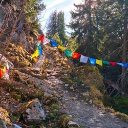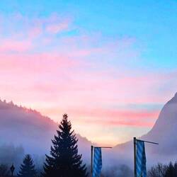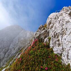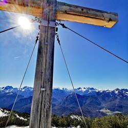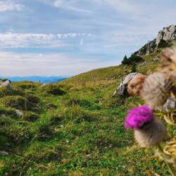 Nachdem der Wetterbericht für den nächsten Tag noch besser gemeldet hatte, blieb ich über Nacht und wollte noch den höchsten Gipfel der Chiemgauer anpacken, das Sonntagshorn (1961m). Auf den 980hm in zwei Stunden genieße ich ein mega Panorama und einen total abwechslungsreichen Pfad aus Wurzeln, Wiese, neben einem Bachlauf, über die wunderbare Hochfläche der Hochalm mit etlichen Almen, schrofigen Gelände und Serpentinen durch Latschen. Und die ziehen sich... Man weiß, wo man hinmuss und irgendwie kommt man nicht näher. Und dann plötzlich ist man oben. Was für eine Aussicht! Ich darf das alleine genießen, obwohl der Gipfel stets bestens besucht ist, was ich auch an den mir Entgegenkommenden (Hier und da ein kurzer, netter Plausch.) merke. Alles richtig gemacht! Die Sonne strahlt, es wird warm. Wie schön wäre es, hier jetzt einfach bis Sonnenuntergang allein zu sitzen, zu schauen, alles in sich aufzusaugen. Was braucht man schon mehr ... Beschwingt marschiere ich nach unten, als sich eine Gruppe nähert. Am Weg tauchen Gebetsfahnen auf, ein schöner, überraschender Farbklecks. Und das ganze Eck dahinten im Heutal ein echt schöner Fleck auf Erden, den ich viel zu wenig kenne.Read more