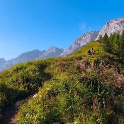Ich hatte eine tolle Runde zum Hahnkampl entdeckt, wusste aber nicht, ob ich die 900hm schaffe bzw wie ich sie verkrafte, will mein Herzstolpern samt Entzündung ja nicht schlimmer machen, wo die letzten Werte schon besser waren. Also ging ich es langsam an, hörte in mich hinein, achtete darauf, dass der Puls nicht zu hoch ging, und wenn ich das Herz gemerkt habe, dann schaltete ich einen Gang runter. Hauptsächlich berauschte ich mich aber am Weg, vor allem nach der Binsalm. Dort traf ich auf zwei Jungs, die den Weg zum Sonnjoch suchten, was da nicht mehr angeschrieben stand. Aber ich konnte ihnen weiterhelfen und wir gingen ein Stück zusammen und plauderten. Als sie auf einer Bank Rast machten, ging ich davon aus, die überholen mich eh wieder, aber ich sah sie leider nicht mehr. Nach einem guten Stück Forstweg wechselte der Weg zu einem Pfad, mal eher panoramamäßig, mal steiniger, mal wurzeliger, mal zwischen Latschen. Die Aussicht wurde immer grandioser - nach und nach tauchten die Bergspitzen rund um die Eng auf und das Grinsen im Gesicht immer größer. Flugs war ich am Binssattel und blickte Richtung Sonnjoch, Gramai, Lamsenjoch. Klar merkte ich das Herz ab und an, aber insgesamt ging es mir total gut und es war klar, auch zum Gipfel geht's noch. Ein Hüppel hoch, dann ein schöner Grat und ein letztes steiles Stück. Das Gipfelkreuz geschmückt mit bunten Gebetsfahnen. Nachdem ich am Aufstieg recht alleine war, war der Gipfel recht voll, aber abseits fand ich ein Plätzchen für eine genussvolle Pause mit Blick Richtung Abstieg. Im Gegensatz zum Juli am Elfer im Stubai schreckte mich es nicht, dass da plötzlich der Weg sozusagen hinterm nächsten Hüppel abfiel und nicht mehr zu sehen war. Irgendwie war klar, den Weg zu gehen. Und der war ebenso fantastisch! Ein schöner Grat, ein paar Kraxelstellen, zwei Mal kurz Drahtseil und dann war das grasige wesliche Lamsenjoch erreicht. Beschwingt ging ich erst den Pfad, dann den Forstweg zurück zur Binsalm, gleichzeitig die Eltern ankamen und Kaiserschmarrn und Germknödel herrlich schmeckten. Rund vier Stunden statt 4:30 Stunden hatte ich trotz gemütlichen Gehens, Pause und diversen begeisterten Fotostopps gebraucht. Ich war stolz auf mich, auch wenn die Angst im Hinterkopf lauert. Aber es war so gut, es zu machen! Eine geniale Tour, ein Tag im Sonnenschein und im gewaltigen Panorama des Karwendels, das den Kopf frei gepustet und das Herz leicht gemacht hat.Read more