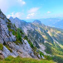 Es geht zurück zur großen Wiese und links an der Kesselwand runter in die Zeller Scharte, um nach kurzer Zeit schon am fast letzten Aufschwung zum Wendelstein stehen. Über unzählige Stufen, auch mal hübsch am Fels entlang stapfen wir nach oben. Mein Standardspruch in diesen Minuten und wenn Roman keine Stufen mehr sehen kann: „Die machen nen knackigen Arsch!“ Nachdem wenig später auf dem serpentinenartigen Gipfelweg nochmal welche auftauchen und in der Höhle auch – unsere knackigen Hintern passen etz in keine Hose mehr! Erst watscheln wir also ganz nach oben und sind gerade noch rechtzeitig dort, bevor eine regelrechte Völkerwanderung einsetzt, dann nehmen wir noch die Aussichtskanzel am Wendelsteinhaus sowie das Kircherl mit, das mich mit dem 12-Uhr-Läuten verzaubert. Irgendwie besonders da oben am Berg. Die Aussichtskanzel ist in sofern super, dass sie Tafeln mit den ganzen Bergen im Panorama bietet – und mich darin bestätigt, dass das eine der Großvenediger ist. Na wird ja langsam mit dem Auskennen. Das Tolle: Auch der Hohe Göll ist zu erahnen. In der Sonne gönnen wir uns eine wichtige Elektrolytezufuhr, bevor wir uns auf in die Wendelsteinhöhle begeben. Hier ist erstaunlich wenig los, die Athmo mit der Beleuchtung echt schön, die Steinmassen über einem beeindruckend. Damit verlassen wir den Wendelstein und wandern zurück Richtung Lacherspitze und über die andere Seite des Lacherkars letztlich hinab. Echt eine superschöne, abwechslungsreiche, entspannte und entdeckungsreiche Tour - und meine erste geführte Wanderung; hab ich gar nicht so schlecht gemacht - vielleicht doch eine Option...Read more