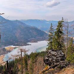 Eigentlich sollte die Tour zum Auerspitz auf 1811m führen; auf dem Nachbargipfel Miesing war ich im vergangenen Jahr und absolut angetan von der Gegend. Nachdem es die Tage vorher frisch und regnerisch war, passte die Wegstrecke perfekt, denn bis zum malerisch gelegenen Soinsee geht es einen Fahrweg durch Wald, Schlucht mit tief unten gluckerndem Wasser und über idyllische Almwiesen hinauf. Auch wenn der Weg an sich nicht anspruchsvoll ist, hat er eine gute Steigung. Trotzdem habe ich den Blick für kleine Wasserfälle, grün bewachsende Felsen wie in einem Märchenwald und den langsam aufreißenden Himmel. Eine Kehre über mir draußen auf der freien Fläche stürmt plötzlich eine Horde Gamsen quer über die Wiese. Was für ein Schauspiel! Als sie weg sind, gehe ich weiter bis plötzlich der Fahrweg mit einer Schneeschicht bedeckt ist. Die wird mal mehr, mal weniger und wächst bis kurz vor dem See auf eine stattliche Dicke von bestimmt 30 bis Zentimetern an. Noch ist sie relativ fest, es scheint noch keine Sonne darauf. Auf der kleinen, engen Hochfläche angekommen, liegt der Soinsee noch im Schatten. Nach einigem Suchen am Ufer finde ich den Weiterweg. Der Schnee ist hoch und wird immer weicher, ich sinke oft unerwartet und teilweise fast bis zu den Kien ein. Ich beschließe, umzudrehen. Ich kneife, weil ich nicht weiß, was unter dem Schnee ist. Was ist, wenn ich mich verletzte, abrutsche? Ich bin alleine unterwegs und eine Rettung durch die Bergwacht muss ich nicht herausfordern. Ich mache länger Pause mit Vesper am Soinsee; finde einen Stein in der Sonne und genieße die Einsamkeit. Als ich wieder auf dem Fahrweg nach unten bin, radelt mir ein Einheimischer entgegen; er hat Skier auf den Rücken geschnallt. Tja, der kennt sich halt aus und mir wird klar, warum ich nicht mehr weitergekommen bin ;-)Read more
