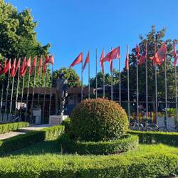 Gestern und heute war es sehr heiß in Tirana, sodass ich den Tag gestern zunächst im BunkArt-Museum verbracht habe, wo die albanische Geschichte noch etwas detaillierter aufgearbeitet ist als im House of Leaves. So richtig vertraut werden mir die Bunker hier jedoch nicht, was vermutlich ein gutes Zeichen ist. Umso mehr irritiert es mich, dass andere Museumsbesucher fleißig neben den ausgestellten Uniformen und Stacheldrähten posieren und Selfies zum Andenken machen. Ich verbringe hier ehrlich gesagt nicht allzu viel Zeit, die Untiefen einer sozialistischen Diktatur sind mir für einen Junitag bei gut 34 Grad doch irgendwann genug. So lasse ich mich durch mehrere Cafés treiben - es gibt hier wirklich sehr guten Kaffee und mindestens so gute Cookies, Muffins, Donuts, Kuchen, süße Teigtaschen und einfach alles, was das Kaffee-Kuchen-Herz an einem Samstagnachmittag begehrt😅. Den Abend lasse ich auf meiner Dachterrasse mit Brot, Käse und Oliven vom Markt ausklingen und freue mich sehr auf meinen Kochkurs, den ich für Sonntagmittag gebucht habe. Dieser erweist sich als richtiger Glücksgriff! Die kleine Kochschule von Sindi ist fußläufig von meiner Unterkunft aus zu erreichen, in einem kleinen, schattigen Hinterhof, in dem Sindi neben Feigen- und Olivenbäumen allerlei Pflanzen und Kräuter kultiviert. Die Organisation des Kurses ist super, Sindi hat mir schon nach der Buchung alle wichtigen Infos per WhatsApp zukommen lassen und erwartet uns Gäste auf der Straße, da der Eingang zur Kochschule etwas versteckt ist. Wir kochen heute zu fünft, mit mir haben noch ein österreichisches Paar, eine Kanadierin und eine Britin den Kurs gebucht und wir verstehen uns auf Anhieb. Unter Sindis wachsamen Augen bereiten wir eine albanische Version von Bruschetta vor (die Einflüsse der italienischen Küche sind hier riesig, da während der sozialistischen Diktatur so viele Albaner:innen nach Italien geflüchtet und teilweise später zurückgekehrt sind), anschließend kochen wir einen herzhaften Kuchen aus Filoteig, gefüllt mit Spinat und Feta, als Hauptgang gibt es das albanische Nationalgericht Tave Kosi, das aus gebackenem Lamm- bzw bei uns Rindfleisch in einer Soße aus Joghurt, Ei und Gewürzen besteht. Zum Nachtisch gibt es die so ziemlich besten Kekse, die ich je gegessen habe - sie werden nach dem Backen in einer Mischung aus Butter und Zimt (funktioniert genauso mit Vanille für diejenigen, die kein Zimt mögen) getränkt und schmecken wirklich köstlich. Während des Kochens versorgt Sindi uns mit Rotwein und Raki aus dem Garten ihrer Familie und so werden aus dem für vier Stunden angesetzten Kochkurs gute sechs Stunden. Nebenbei organisiert Sindi mir noch meinen Transfer zum Flughafen morgen früh, da die Busse so früh nicht zuverlässig fahren und druckt mir auch noch mein Flugticket aus weil sie meint, dass die Fluggesellschaften hier häufig die elektronischen Tickets nicht akzeptieren. Mehr als gut gesättigt und beseelt über diesen tollen letzten Tag in Albanien laufe ich zurück in mein Appartement und freue mich sehr, mich bei dieser Reise für diese Balkan-Region entschieden zu haben.