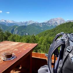 ich habe es tatsächlich unversehrt durch das Prokletije-Gebirge geschafft und sitze mit roten Wangen glücklich und zufrieden im Garten meiner Unterkunft in Theth, die ich vor sechs Tagen verlassen habe😃. Die für mich letzte Etappe des PoB war heute noch einmal ganz schön anstrengend, denn es ging zunächst knapp fünf Stunden lang mehr oder weniger durchgehend bergauf, zum Glück am Anfang durch den Wald. Nach einer wirklich ruhigen und guten Nacht in meiner kleinen Blockhütte und einem super Käse-Omelette meiner letzten Gastgeber zum Frühstück fühle ich mich jedoch deutlich fitter als gestern und bin bereit für die letzte Etappe. Meine Gastgeber haben mir noch eine zusätzliche Flasche Wasser mitgegeben, was sich als wirklich gut erweist, denn auf dieser Etappe gibt es deutlich weniger Wasserstellen als auf den letzten.