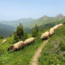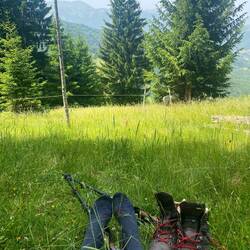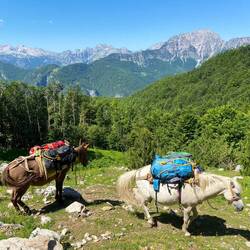 zunächst einmal ganz lieben Dank für Eure lieben Nachrichten und Kommentare😃 Tatsächlich hatte ich fast zwei Tage lang keine Internetverbindung, da es in den Bergen so gut wie keinen Empfang gibt und im Dörfchen Babino Polje, wo ich gestern übernachtet habe, sogar auch kein WLAN gibt. Doch der Reihe nach. Nachdem die Hitzewelle aus Griechenland endgültig Albanien und Montenegro erreicht hat, habe ich mich nach ein bisschen hin und her Überlegen, entschieden, die Wanderung um drei Tage abzukürzen. Die Temperaturen liegen zwischen 33 und 36 Grad und manche Etappen führen überwiegend über Wiesen und Berge mitten in der Sonne. Von Doberdol aus gibt es die Möglichkeit, die drei Tage im Kosovo auszulassen und direkt nach Babino Polje, Montenegro zu wandern. Für die Option hatte sich bereits eine Finnin entschieden, mit der ich mich sehr gut verstehe. Zunächst gefällt mir die Idee nicht, meine Pläne zu ändern. Allerdings sollen die Markierungen des PoB im Kosovo nicht so gut sein, sodass man sich eher mal verläuft. Die Route über den Kosovo ist also keine wirkliche Option mehr. Ich entscheide mich daher, mit Emilia, der Finnin, den PoB auf sieben Tage zu verkürzen. Wir laufen zunächst auf einen Gipfel, auf dem sich die drei Ländergrenzen Albaniens, Kosovos und Montenegros treffen und laufen anschließend fast den ganzen Tag auf der Grenzlinie zwischen Montenegro und Kosovo. Die Grenzlinie zwischen den beiden Ländern ist bis heute umstritten und war 1998/1999 u. a. Gegenstand des Kosovo-Krieges. Bis heute wird über den Grenzverlauf immer wieder verhandelt, bislang ohne Ergebnis. Von diesem diplomatischen Hochreck bekommen Emilia und ich beim Wandern nichts mit, sondern laufen im Zickzack zwischen den beiden Ländern hin und her. Es soll ab und zu Grenzkontrollen geben, für uns sind aber keine Grenzbeamten in Sicht, genau wie wir an dem Tag kaum andere Wanderer treffen. Da Emilia mit ihrem Zelt unterwegs ist, schlägt sie irgendwann an einem Bachlauf ihr Nachtquartier auf während ich noch weiter nach Babino Polje laufen muss. Als ich sie verabschiede, stelle ich erschreckt fest, dass es bis dorthin noch 2,5 Stunden sind und es ist schon kurz vor vier. Zu der Zeit war ich sonst immer schon angekommen und hatte genügend Zeit um meine Sachen zu waschen und mich für den nächsten Tag auszuruhen. Ich fange also an, mich zu beeilen und komme glatt etwas vom Weg ab. Also laufe ich zurück, kann den vorgesehenen Pfad in der steilen Wiese aber nicht finden. Ich entschließe mich daher, den offiziellen Markierungen zu folgen, auch wenn sie vom bereits sichtbaren Dort wegführen. Ziemlich erschöpft lande ich beim Abstieg auf einem kleinen Bauernhof, wo mich zunächst der Wachhund und kurz darauf - deutlich aufgeschlossener 😅- die Bäuerin begrüßt. Sie fragt, ob ich meine Cola mag, ich verneine zunächst weil ich unbedingt zum Abendessen in meiner Unterkunft sein möchte. Sie ist aber so freundlich, dass ich mich doch für eine Cola entscheide und sie ruft über ihr Satelliten-Telefon meinen Gastgeber Agron an und ruft ihm zu, dass sie mich aufgegabelt hat und ich gleich komme. Sie erzählt mir noch, dass sie wie alle ca. 30 Einwohner Babino Poljes nur in den Sommermonaten dort ist und sonst in Plav lebt. Auf ihrem Bauernhof stellt sie selbst Käse, Joghurt und Butter her - ihre Spezialität sei selbst gemachter Joghurt mit selbstgemachtem Heidelbeer-Sirup. In den Genuss komme ich leider nicht, ich muss endlich weiter und finde irgendwie den Weg zur Straße. Während ich noch überlege, ob dieser Schotterweg ernsthaft die Straße in Richtung Plav sein soll, kommt mir ein Junge auf einem Pferd entgegen und fragt, wo ich hin muss. Ehrlich gesagt, bin ich zunächst etwas skeptisch, denn ich habe es auf Reisen hin und wieder erlebt, dass Gasthäuser ihre Kinder losschicken, um Kundschaft zu suchen. Für solch eine Diskussion hätte ich nach dem Tag nun wirklich keine Energie mehr gehabt. Der Junge hat aber nichts dergleichen im Schilde sondern freut sich über die Abwechslung am Abend. Er spricht ziemlich gutes Englisch und ich freue mich, eine weiche Pferdenase zu streicheln. Er fragt mich allerhand und wir spielen ein kleines Ratespiel über unser Alter, aus dem wir beide beglückt herausgehen (er hat mich auf 25 geschätzt, ich ihn auf 12, obwohl er erst 9 Jahre alt ist 😅🙌🏽). Nach gut 2,5 km komme ich ziemlich erschöpft in meiner Unterkunft an und habe riesiges Glück, an diesem Tag bei Agron im Triangle Woodhouse zu schlafen. Er hatte mir bei der Reservierung über WhatsApp schon super-sympathisch geantwortet und ich werde nicht enttäuscht. Mit mir schlafen noch vier andere Deutsche dort, zwei von ihnen kenne ich von der letzten Unterkunft und freue mich, sie wiederzusehen. Das Abendessen hat Agron auf einem kleinen Holzofen selbst gekocht und ist das beste Essen, dass ich in den letzten Wochen gegessen habe. Es gibt eine Gemüsesuppe mit Eierstich, als Zwischengang selbstgemachten Börek mit Feta und fermentiertem Gemüse, als Hauptgericht Moussaka und als Nachtisch eine gefüllte Haselnussrolle mit Obst. Alle Zutaten kommen aus der direkten Umgebung und so lassen wir den Abend zunächst mit dem köstlichen Abendessen, dann mit Agrons selbstgemachtem Raki und abends auf der Veranda unter Tannenbäumen ausklingen. Agron unterhält in den Sommermonaten das Guesthouse und lebt ansonsten mit seiner Familie in München und spricht mit breitem, bayrischem Akzent 😌. Er erzählt uns viel über die Geschichte des Landes und auch über die Essenstraditionen. Ich weiß nicht, wann ich das letzte Mal einen so aufmerksamen Gastgeber hatte und kann das Triangle Woodhouse wirklich nur empfehlen, sollte jemand von Euch mal in Montenegro sein. Nach einer herrlich ruhigen Nacht mitten im Wald (Ihr seht die Unterkunft auf einem der Bilder) werden wir mit einem ebenso herausragenden Frühstück empfangen wie das Abendessen hat vermuten lassen. Es gibt frischen Käse aus dem Do