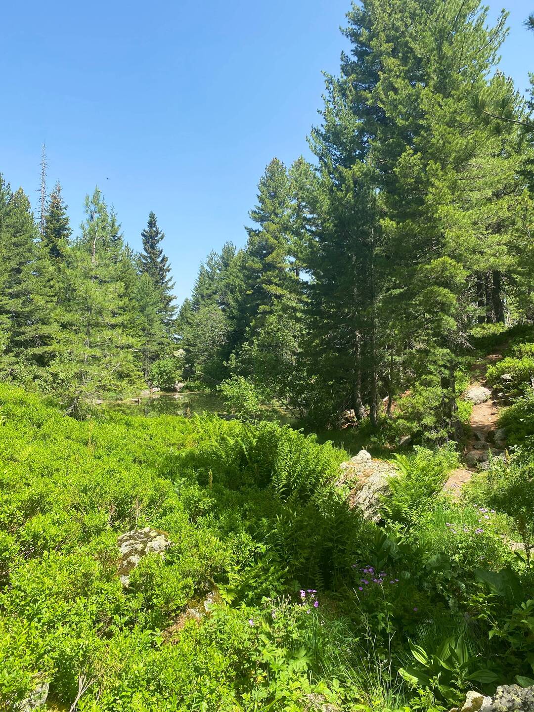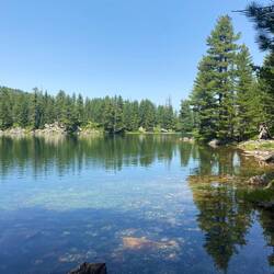 nach dem tollen Frühstück bei Agron starte ich zuversichtlich in die fünfte Etappe des PoB von Babino Polje nach Plav. Es soll wieder sehr warm werden, allerdings geht es heute nur morgens bergauf und die gesamte Strecke führt überwiegend durch den Wald. Zudem gibt es viele Wasserstellen und der Weg ist hier in Montenegro sehr gut ausgezeichnet, sodass ich das GPS kaum brauche. Das erste Teilziel des Tages ist der wunderschöne See Hridsko jezero auf 1.971 Höhenmetern. Ich mache eine erste Pause und blicke auf das glasklare Wasser und schaue anderen Wanderern und Mountainbikern beim Schwimmen zu. Ich würde auch gerne im See schwimmen, habe aber zu viel Sorge, dass meine Sachen geklaut werden. In solchen Momenten finde ich es wirklich schade, alleine unterwegs zu sein, denn hier muss ich mich gegen den Spaß und für meine Sicherheit entscheiden. Nun gut, so ist es und ich laufe weiter, überwiegend talabwärts Richtung Plav, einem kleinen Städchen in Montenegro. Zwischendurch treffe ich immer wieder auf eine fünfköpfige Wandergruppe, deren montenegrinischer Wanderführer ein wachsames Auge auf mich hat und mir eine Abkürzung nach Plav über die Via Dinarica, einem anderen Fernwanderweg, zeigt. So laufe ich bis Plav immer in Sichtweite hinter der Gruppe her und komme gegen 16h im Stadtzentrum von an. Es fühlt sich ein bisschen seltsam an, nach den letzten Tagen in der Natur wieder in einer Stadt zu sein, dennoch freue ich mich über den Supermarkt um ein paar Snacks für die nächsten Tage unterwegs zu kaufen. Spontan fühle ich mich riesig wohl in Montenegro, die Menschen sind mir auf Anhieb sympathisch. So auch ein Herr im Supermarkt, der meine roten Wangen und Wanderklamotten sieht und ganz begeistert fragt, wo ich herkomme. „Germany!“ antworte ich und der Herr muss tierisch lachen und sagt, dass man mir zwar ansehe, dass ich heute lange gelaufen sei. Dass ich aber von Deutschland nach Montenegro gelaufen sei, würde ihn aber nun doch überraschen 😅. Dann plaudern wir über die EM, er sagt, dass er es sehr schade finde, dass Montenegro sich nicht qualifiziert habe, er wäre so gerne nach Deutschland zur EM gekommen. Wir verabschieden uns, ich suche mir ein paar Snacks und werde an der Kasse vorgelassen, weil die Kunden hinter mir meinen, dass ich bestimmt müde sei. Ich bin begeistert von so viel Höflichkeit und noch begeisterter von der Möglichkeit, mit Karte zahlen zu können. Das ist auf dem PoB tatsächlich nicht möglich und so laufen sämtliche Wanderer mit hunderten von Euros durch die Gegend. Ich laufe zu meiner nächsten Unterkunft, die mein letzter Gastgeber Agron mir gestern Abend noch organisiert hat. Gleich auf der Einfahrt werde ich winkend begrüßt, man habe schon auf mich gewartet und sie werden Agron gleich anrufen und ihm sagen, dass ich gut angekommen sei. Ich freue mich über den herzlichen Empfang, springe unter die Dusche, organisiere ein wenig meine Unterkünfte in den nächsten Tagen und esse kurze Zeit später mit drei Holländern zusammen auf der Terrasse unserer Unterkunft mit Blick auf den See von Plav zu Abend. Morgen früh werde ich sehr früh aufbrechen, um vor der Nachmittagshitze in Vusanje, meinem nächsten Ziel, anzukommen.
