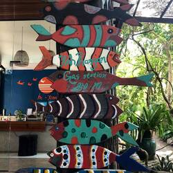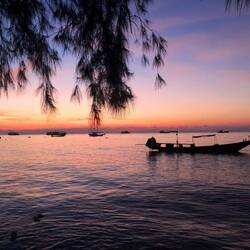 Im Bus versuche ich zu schlafen, was mir wegen der Gedanken über meine Bargeldversorgung jedoch reichlich schwer fällt (und die Zahlungen laufen hier weit überwiegend über Bargeld, teilweise sogar in den Unterkünften). Da ich noch keine thailändische SIM-Karte habe und es im Bus kein WLAN gibt, suche ich nach heruntergeladener Musik auf Spotify und stelle fest, dass ich hier nicht allzu gut aufgestellt bin. Ich habe genau ein Album von den Dire Straits heruntergeladen und stelle fest, dass es exakt das Album ist, das ich 2004 auf dem Weg zu meinem Highschool-Aufenthalt in Kanada gehört habe (damals noch reichlich umständlich ausgestattet mit CD und Diskman😅). Verrückter Zufall, aber so werde ich zumindest ein bisschen besungen. Da der Schlaf immernoch auf sich warten lässt und der Bus zunächst in undefinierbarem Zickzack durch irgendwelche Vororte von Bangkok cruised - wobei wir entweder tanken, irgendwelche Kollegen des Busfahrers absetzen oder irgendwen einsammeln - versuche ich es erfolglos mit Schäfchen-Zählen, was in schlaflosen Nächten zu Hause meist gut funktioniert. Irgendwann fällt mir auf, an wie vielen unzähligen 7/11-Märkten wir vorbeikommen und ich beginne sie anstelle der Schäfchen zu zählen. Irgendwo bei 167 schlafe ich dann wohl doch ein, jedenfalls sind wir irgendwann am Ufer bei Chumphon angekommen, vom wo aus die Fähre nach Koh Tao ablegt. Auf diese müssen wir allerdings noch eine Weile warten und so nutze ich den Sonnenaufgang für ein paar Bilder vom Pier und von den Fischerbooten. Das Licht wechselt morgens um etwa 6h so schnell, dass ich mit dem Einstellen der Belichtungszeit meiner Kamera kaum hinterherkomme. Schließlich holt uns die Fähre ab und gut anderthalb Stunden später kommen wir auf Koh Tao an. Dort gehe ich aufgeregt zum erstbesten Geldautomaten, der glücklicherweise endlich meine Karte akzeptiert und ich darauf achte, an meine Karte zu denken - eine Sorge weniger und das fühlt sich sehr gut an. Zu Fuß mache ich mich auf den Weg zu meiner Unterkunft, einem Pavillon direkt am Strand. Wie dieser zu einer weit überdurchschnittlichen Bewertung bei Booking.com kommen konnte, ist mir allerdings ein völliges Rätsel, ist er doch reichlich in die Jahre gekommen und ich heilfroh über das Desinfektionsmittel in meinem Gepäck. Wirklich wohl fühle ich mich hier nicht, da jedoch mein Tauchkurs noch am selben Nachmittag mit der Theorie beginnt, beschließe ich, dass ich hier letztlich nur übernachten werde und die übrige Zeit mehr draußen als drinnen verbringen werde. Immerhin bekomme ich ab dem dritten Tag ein nettes indisches Paar als Nachbarn, die mich prompt nach Neu Delhi einladen und ich sie nach Köln. Mal sehen, wer von uns die Einladung eher einlöst. Der richtige Insel-Vibe will bei mir jedoch auch in den kommenden Tagen nicht aufkommen, die Atmosphäre ist einfach nicht ganz die meine. Das hatte ich bei der Planung schon geahnt, da Koh Tao aber ein absoluter Tauch-Hotspot ist, in dem sich eine Tauchschule an die nächste reiht und man somit jeden Tag mit dem Tauchen beginnen kann und das zu unschlagbar günstigen Preisen, habe ich mich gleichwohl dafür entschieden. Davon abgesehen reihen sich nahtlos neben die unzähligen Tauchschulen eine Unmenge an Restaurants und Bars, Hotels und Hostels, Massage-Studios, Geldwechselstuben, Nagelstudios (Finger- und/oder Fußnägel? Shell-Lack oder doch lieber ganz konventioneller Lack? Lachsfarben auf die Fußnägel und Magenta auf die Fingernägel oder doch lieber ein zartes Apricot oder Koralle?😉) sowie Friseursalons ein. Diese werden mehr oder weniger sinnvoll ergänzt durch eine Reihe von Marihuana-Shops, denn wie ich kurz darauf erfahre, wurde Marihuana in Thailand erst diesen Sommer legalisiert, was eine bestimmte Art von Touristen anzieht (deutsche, niederländische und britische schienen mir hier als besonders engagierte Konsumenten hervorzustechen). Darüber hinaus fällt mir wie schon in den Strandregionen Mexikos oder Vietnams auf, wie unfassbar viel Plastik gefühlt überall herumfliegt und es kaum Mülleimer gibt. Dabei ist mir bewusst, dass auch ich zwangsläufig meinen Beitrag hierzu leiste, da es tatsächlich kaum Alternativen gibt. Kranwasser traue ich mich nicht zu trinken und bin daher auf die Plastikflaschen angewiesen. Mein Versuch, beim nächsten 7/11 eine Packung mit Keksen zu erstehen, die nicht jeweils einzeln in Plastik eingeschweißt sind, endet am nächsten Morgen mit einer begeisterten Eidechse, die sich ein ausgiebiges Frühstück in der Kekspackung gönnt und einer Ameisenstraße aus der Kekspackung heraus zur Türe des Bungalows 🤦🏼♀️. Ich beschließe also keine Vorräte mehr anzulegen, sondern nur noch auswärts zu essen.