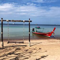 Meinen Tauchkurs mache ich in einer britischen Tauchschule und bin froh über die Ablehnung von meiner Unterkunft. Der Tauchkurs beginnt mit einem Tag Theorie, gefolgt von einem Tag Tauchübungen im Pool und anschließenden zwei Tagen mit jeweils zwei Tauchgängen im Meer. Da die ganze Angelegenheit für meine Begriffe doch recht technisch ist und ich zudem die einzige nicht englische Muttersprachlerin in meiner Tauchgruppe bin, ist meine Konzentration hier ganz schön gefragt, was mich aber zum Glück gut ablenkt von der Tatsache, dass Koh Tao nicht unbedingt meine absolute Komfortzone ist. Der erste Tauchgang im Meer wird ehrlicherweise zu einer ordentlichen Herausforderung, hat es doch am Morgen begonnen, wie aus Eimern zu gießen, weshalb das Boot, das uns zum ersten Tauchspot bringt, gefühlt über die Wellen hüpft und die Hälfte der Passagiere seekrank wird. Der Platz über der Reling bleibt mir Gottseidank erspart, ganz gut geht es mir aber auch nicht als wir zum ersten Mal abtauchen sollen. Letztlich schaffe ich es dann aber doch, mir ein Herz zu fassen und auf das Atemgerät zu vertrauen und bin riesig stolz, als wir nach etwa 40 Minuten wieder auftauchen und meine Lunge offensichtlich auch über der Wasseroberfläche noch gut funktioniert. Die nächsten drei Tauchgänge verlaufen dann schon deutlich entspannter und ich schaffe es jedes Mal ein bisschen besser, mich auf die Meeresbewohner zu konzentrieren. Am Ende des vierten Tages habe ich meinen Open Water-Schein bestanden und freue mich riesig, dass ich es geschafft habe, sowohl auf die Technik als auch auf mich selbst zu vertrauen. Von unseren letzten beiden Tauchgängen wurde ein Video angefertigt, dass ich Euch beigefügt habe, ich hoffe, es lässt sich gut öffnen und anschauen.