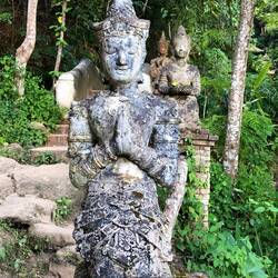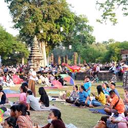 nun hat es ein paar Tage gedauert, bis ich wieder zum Schreiben gekommen bin. Ich war tatsächlich mit Reisen und Staunen beschäftigt und das genau in dieser Reihenfolge ☺️✨. Einen Tag nach Abschluss meines Tauchkurses geht es zunächst mit der Fähre und anschließend mit dem Bus insgesamt knapp 12 Stunden wieder Richtung Norden zurück nach Bangkok, von wo aus ich früh am nächsten Morgen nach Sukhothai fliegen werde. Die Busfahrt erscheint mir dieses Mal deutlich länger, da ich bei der Nachtfahrt einige Stunden verschlafen habe. Andererseits sieht man bei einer Tagfahrt die Landschaft vorbeiziehen, wodurch ich ein besseres Gespür für die Weite des Landes und das unendliche Grün der vielen Kokospalmen und Bananenbäume erhalte (nur unterbrochen durch die unendliche Weite zahlreicher Rasthöfe, Tankstellen, Werkstätten, 7/11-Läden und nicht zuletzt Steinmetze - nun weiß ich auch, wo die vielen Buddha-Statuen gefertigt werden😆). Gegen 21h abends erreiche ich Bangkok und muss irgendwie zu dem Hostel kommen, das ich in der Nähe des Flughafens gebucht habe, da mein Flug am nächsten Morgen schon um 7h geht. Ich entscheide mich, ein „Grab“ zu rufen, die asiatische Alternative zu Uber. Auch wenn mir die Diskussionen zu unfairen Arbeitsbedingungen bei Uber in Europa und Nordamerika bewusst sind, ist Grab zumindest in den Großstädten die mit Abstand einfachste Möglichkeit, von A nach B zu kommen, zumal man nicht zunächst mit einem windigen Taxifahrer den Preis verhandeln muss. Taxifahrer sind mir selbst hier als leicht anstrengende Mitglieder der ansonsten wirklich ausnahmslos höflichen, zurückhaltenden und äußerst dienstleistungsorientierten thailändischen Gesellschaft aufgefallen, zumindest in ihrem beruflichen Kontext. Jedenfalls möchte ich solche Diskussionen nach einem langen Reisetag umgehen und entscheide mich für ein „Grab for Ladies“, was bedeutet, dass man als Frau von einer Frau gefahren wird. Meine Fahrerin ist wieder einmal ein wahrer Segen, denn als wir im Hostel ankommen, ist die Rezeption nicht mehr besetzt und auch sonst wirkt der Ort ziemlich ausgestorben. Vermutlich weil niemand außer mir auf die Idee kommt, so dermaßen in Flughafennähe zu übernachten, dass es sich anfühlt, als stünde das Bett unmittelbar auf dem Rollfeld🤦🏼♀️😅. Meine Grab-Fahrerin ruft über ihr Handy die Eigentümerin der Unterkunft an und wartet mit mir, bis diese schließlich eintrifft und mir die Schlüssel übergibt. Mitten in der Nacht schreibt mir die so liebe Fahrerin noch per Instagram, an welchem Eingang des Terminals ich aussteigen muss und nennt mir die richtigen Schalter für Bangkok Airlines. Wieder einmal bin ich völlig überwältigt von der Hilfsbereitschaft und Unterstützung, die mir entgegengebracht wird. Wirklich viel schlafe ich in meinem Bett auf dem Rollfeld nicht, um 4:10h geht schon wieder der Wecker und ich nehme das nächste Grab zum Flughafen Suvarnabhumi und fliege kurz darauf mit einer kleinen Propellermaschine Richtung Norden nach Sukhothai. Dort soll man das Laternenfestival „Loy Krathong“ am 8. November 2022 besonders gut anschauen können. In Sukhothai treffe ich mich mit Jelte aus den Niederlanden, den ich an meinem ersten Tag in Bangkok in der UBahn kennengelernt habe und der das Laternenfestival ebenfalls in Sukhothai sehen will. Wir stürzen uns also in die feiernden Massen und tatsächlich ist es schön, gemeinsam auf ein Festival zu gehen und die Erlebnisse unmittelbar mit jemandem teilen zu können. Während wir all die Lichter, Kerzen und Lampions bestaunen fällt uns ganz besonders auf, wie höflich und friedlich hier miteinander gefeiert wird. Auch wenn sicherlich mehrere tausend Menschen auf dem Festival zusammenkommen, gibt es kein Gedränge oder auch nur irgendein Anflug von Ungeduld, wenn man nicht gerade die beste Lage für seine Picknickdecke ergattert hat. Leider haben wir beide unterschätzt, dass wir den ganzen Tag bis zum Feuerwerk um Mitternacht auf dem Festival verbringen werden, weshalb sich die Batterien unserer Kameras und Handys gegen Abend dem Ende zuneigen, da wir bei all den Farben und Lichtern schon tagsüber fototechnisch völlig eskaliert sind. Nachtbilder kann ich Euch daher leider kaum zur Verfügung stellen, aber die Tagbilder geben vielleicht auch einen ganz guten Einblick in die Szenerie.