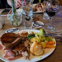 Midi dans un super pub où l'on a mangé des tonnes de bidoche... Mais aussi des légumes !