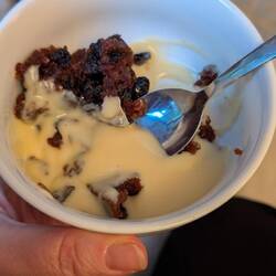 Puis christmas pudding with custard pie le dessert. En vrai, ça peut être pas mal du tout la nourritureもっと詳しく