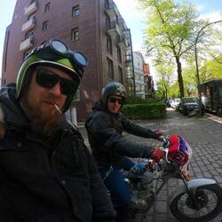 Was für ein Auftakt für eine abartige Reise. Bin absolut platt! 18 Mopeds haben mich auf der ersten Etappe begleitet und mir Windschatten gegeben. Frankensteiger läuft super und hör derRead more