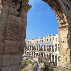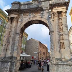 Besuch vom 6. grösste römischen Theater der Welt. Wirklich eine beeindruckende Größe und anschließend schlenderten wir durch das goldene Pula-Stadt-Tor, durch die engen Gassen. Mit dem örtlichenBaca lagi