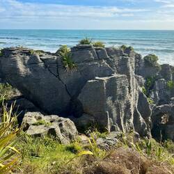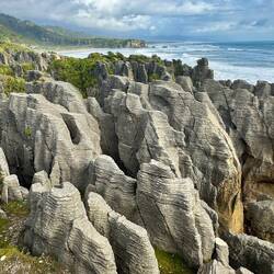 Wir haben noch einen Stopp bei der Hokitika Gorge und bei den Pancake Rocks gemacht.Læs mere