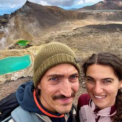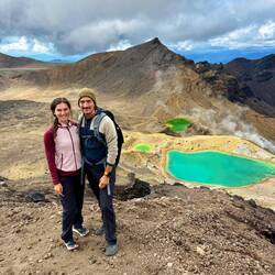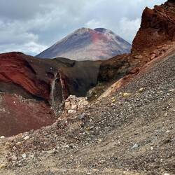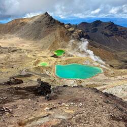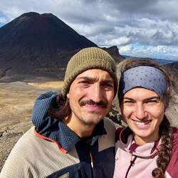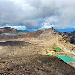 Hier waren wir im Tongariro Nationalpark wandern. In dem waren wir auch schon beim runterfahren in den Süden. Wir gehen am Schicksalsberg entlang und zu einem Aussichtspunkt hinauf, von dem man 4Read more